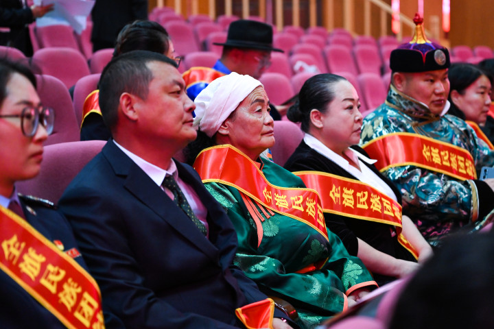 9月26日,通嘎拉嘎去参加苏尼特左旗的民族团结进步表彰大会。新华社记者 刘金海 摄